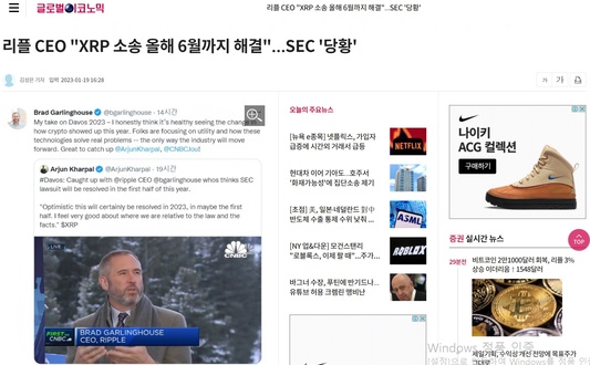 지난 18일 리플 CEO인 브래드 갈링하우스가 스위스 다보스에서 열린 세계경제포럼에서 SEC와의 소송에 대해 인터뷰를 진행했는데요.
