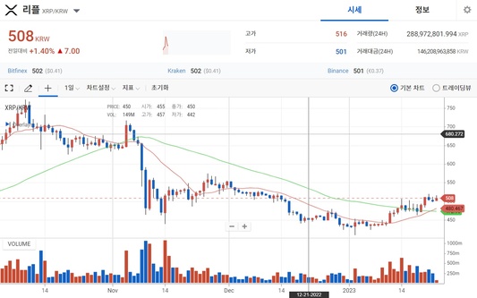 지금 현재 리플 509원으로 전 여전히 437 매수하여 수익률은 16.40%입니다.