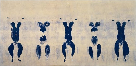 누드 여성 모델이 IKB 물감에 몸을 담갔다가 캔버스가 있는 갤러리 벽에 몸을 찍으며 작품을 라이브로 완성해 간 작품이었습니다.