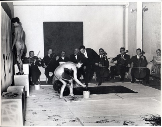 이브 클랭은 그 공연의 지휘자였으며 누드모델들은 그의 파란 물감을 몸에 묻혀 캔버스에 도장처럼 찍으며 캔버스를 채워나갔습니다.